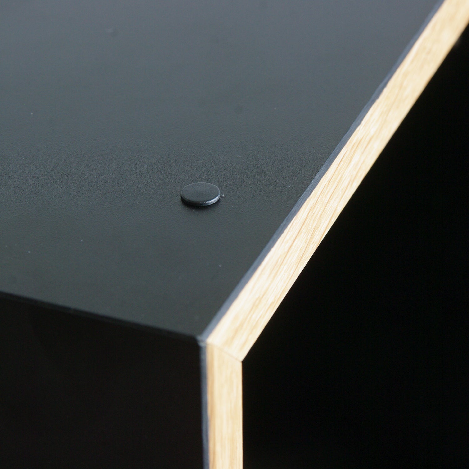 このシェルフには、傷に強いメラミン素材を使用しています。少々荒めの扱いでも安心でき、表面のマットな黒は、シックで高級感のあるデザインを演出。どんなインテリアにも合わせやすいモノトーンカラーは、さまざまな家具や雑貨と相性が良く、幅広くお使いいただけます。
