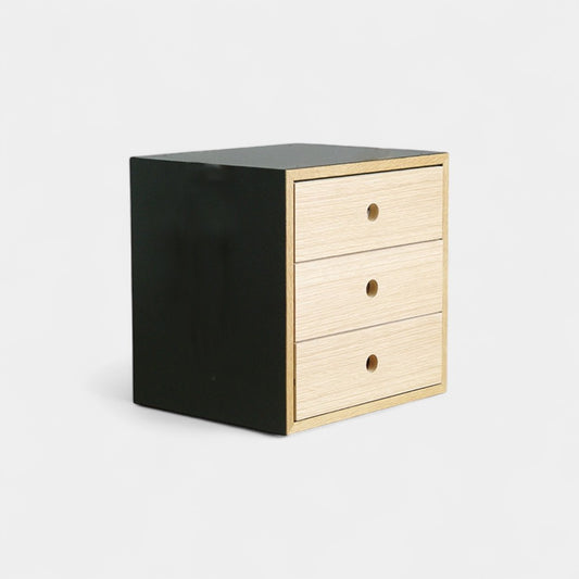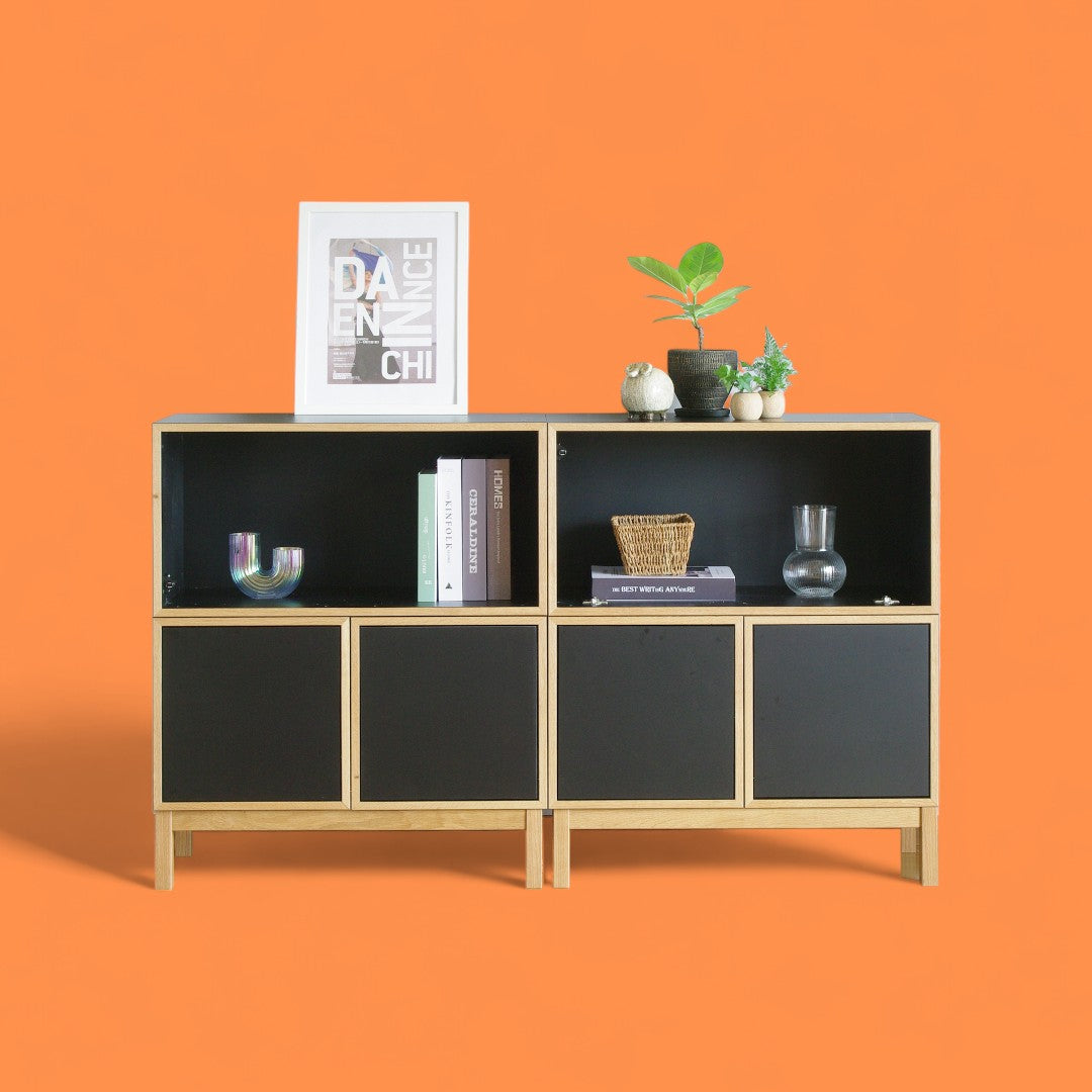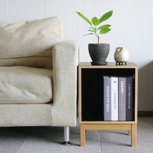 もっと見る本体には傷が付きにくいメラミンを採用。マットな質感で高級感のある素材。木口と脚にはオーク無垢材を採用。45°接合のモジュールは、お部屋を洗練された雰囲気にしてくれます。